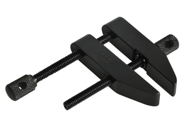Designed for maximum strength and rigidity, this clamp is hardened and extremely useful for holding work together in tapping, drilling and various machine setups. The ends of the jaws are rounded to permit clamping under shoulders or in recesses.