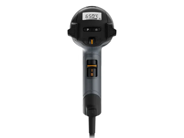 The Steinel HG2320E LCD Heat Gun offers a digital precision tool for temperature-critical materials. The ceramic heaters temperature can be infinitely varied over a range of 80-650°C at the thumbwheel. Integrated thermal cut-out eliminates the risk of overheating. Airflow can be controlled in 2 stages from 150500 l/min.