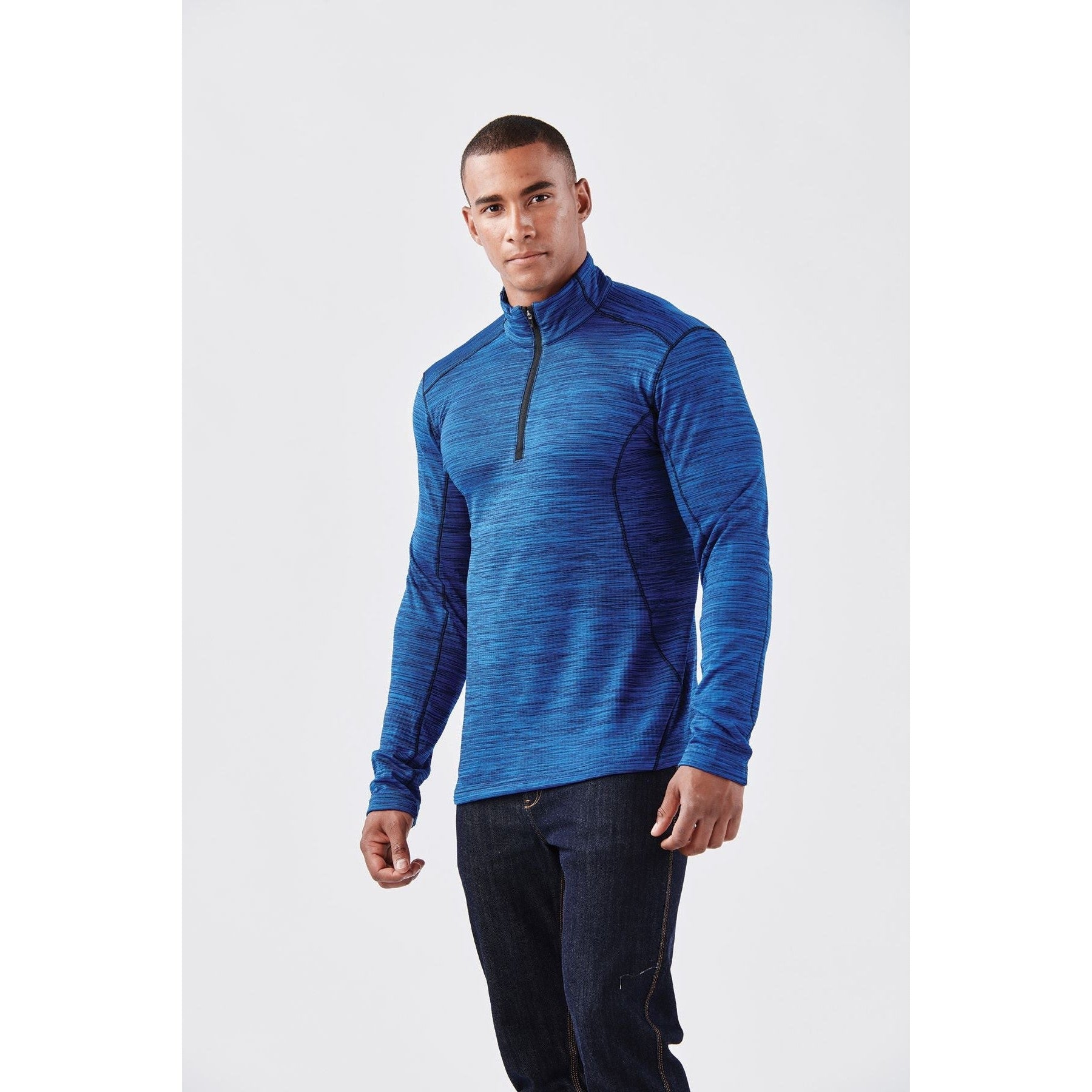 STORMTECH H2X-DRY® moisture management. Snag resistant fabric. Contour side panels. Reverse coil front ¼ zipper Contrast cover stitching.95% Polyester, 5% Spandex with drop needle double-knit fleece wicking and thermal. Oeko-Tex certified. SEDEX certified.