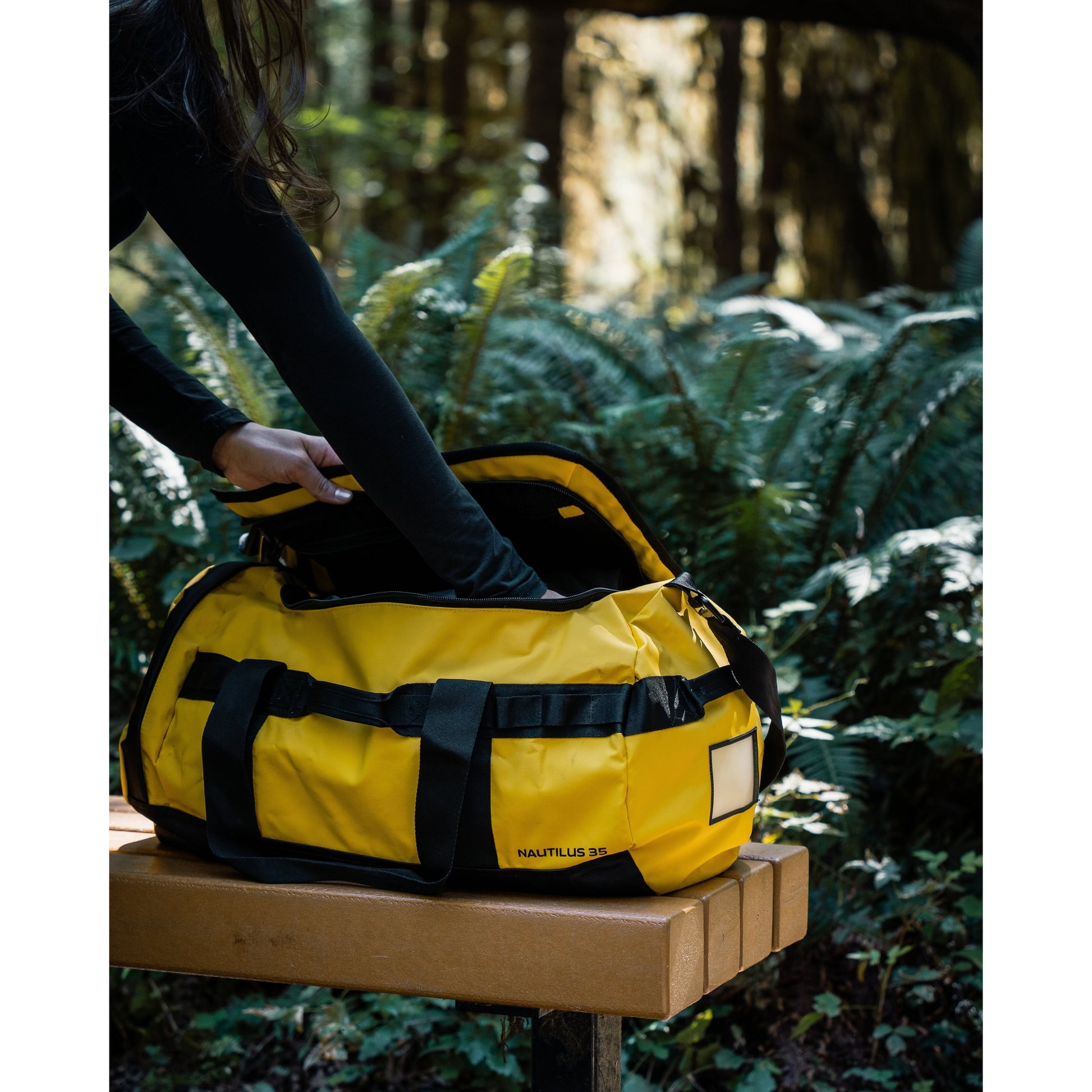 This bag is as light as the heart of a traveller. Designed for maximum performance with less weight, the Nautilus waterproof 35 litre duffle is built with 100% waterproof fabric for wet-weather protection. This multi-purpose duffle/backpack has strategically placed handles for every carrying application and is TSA approved for carry-on.