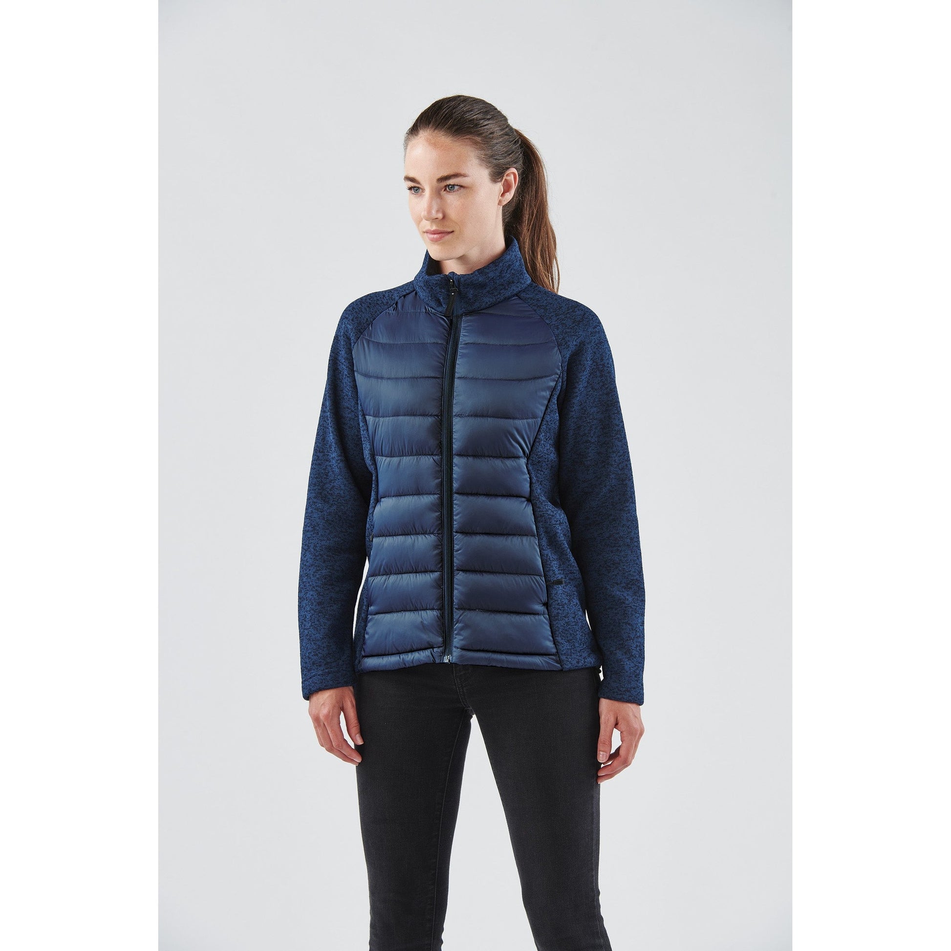 Ultra-lightweight, with maximum thermal efficiency, the Women’s Narvik hybrid jacket isolates and contains heat in damp, cold environments with a lightweight quilted body, bonded knit collar and sleeves. A durable, PFC-free, water-repellent finish on the main body helps to repel water in damp conditions, while the chin saver and adjustable hem with drawcord allow adjustment for maximum comfort during hikes or in outdoor/indoor working environments. Wrap certified. BSCI certified.