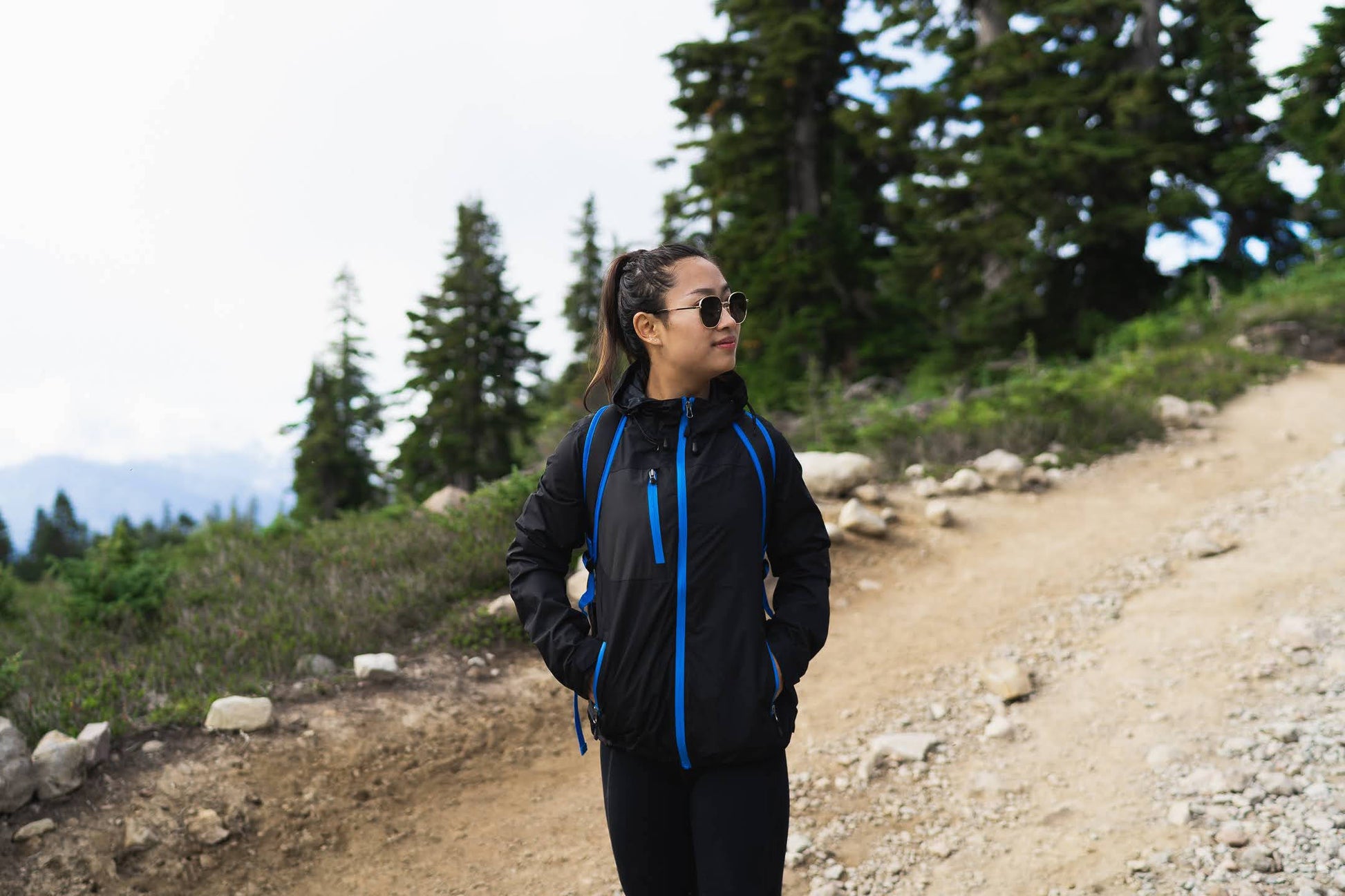 A walk through scenic coastal stretches are moments to seize. Even a wet, rainy forecast should not get in the way of summer adventure. So, come prepared with the ultralight Olympia shell with PFC-Free waterproof, breathable fabric, adjustable hood and a full-length stormflap. This lightweight shell offers articulated comfort and superior, technical weather-ready features.
