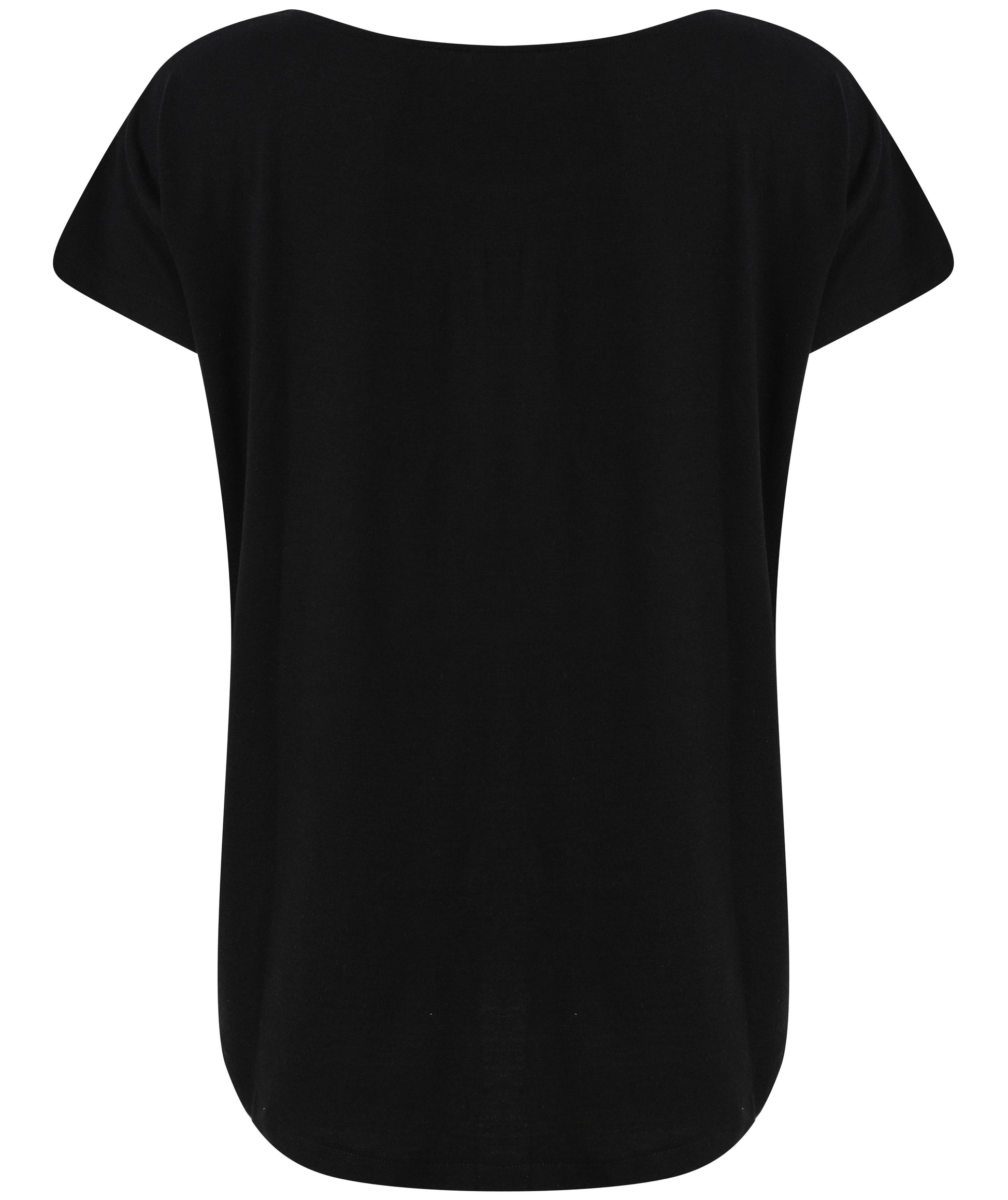Women's scoop neck T with oversized fit and scoop neck. Dropped shoulder seams and dropped tail hem on back. Super soft fabric. Tear-out label. . BSCI certified. Oeko-Tex certified.