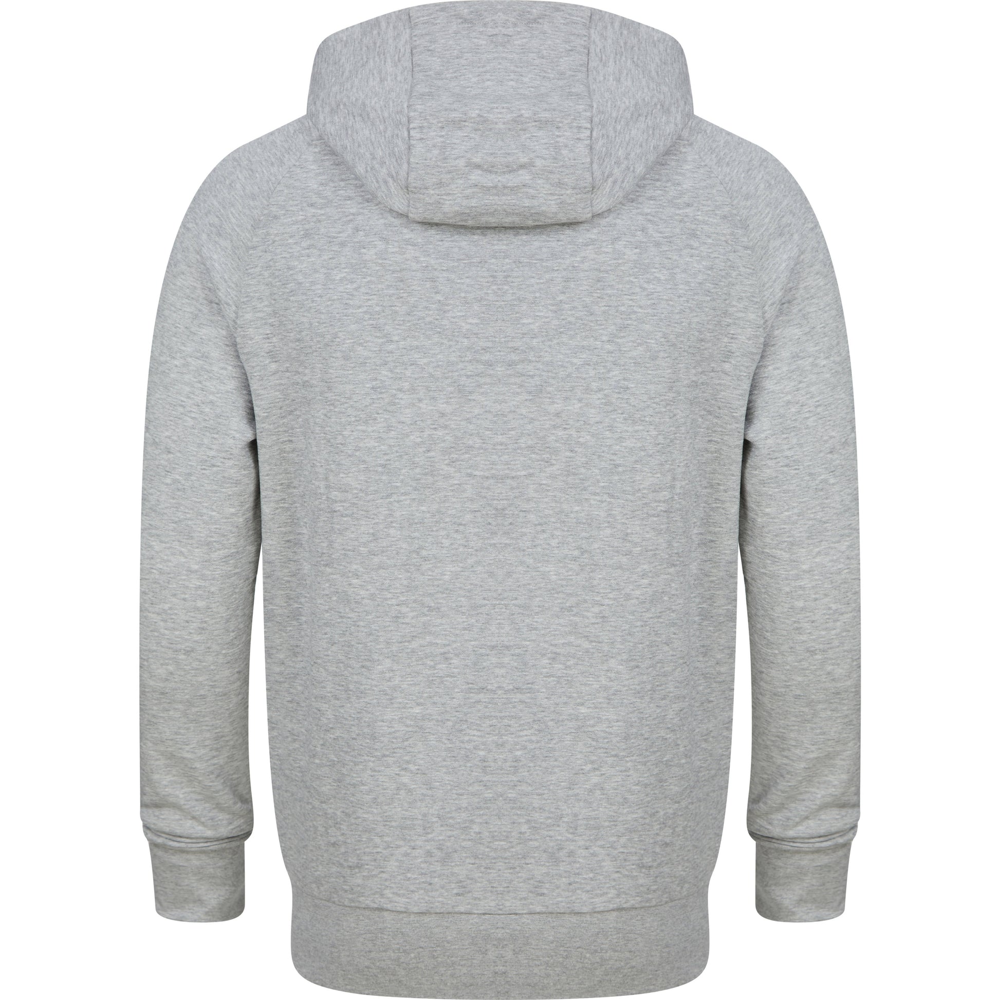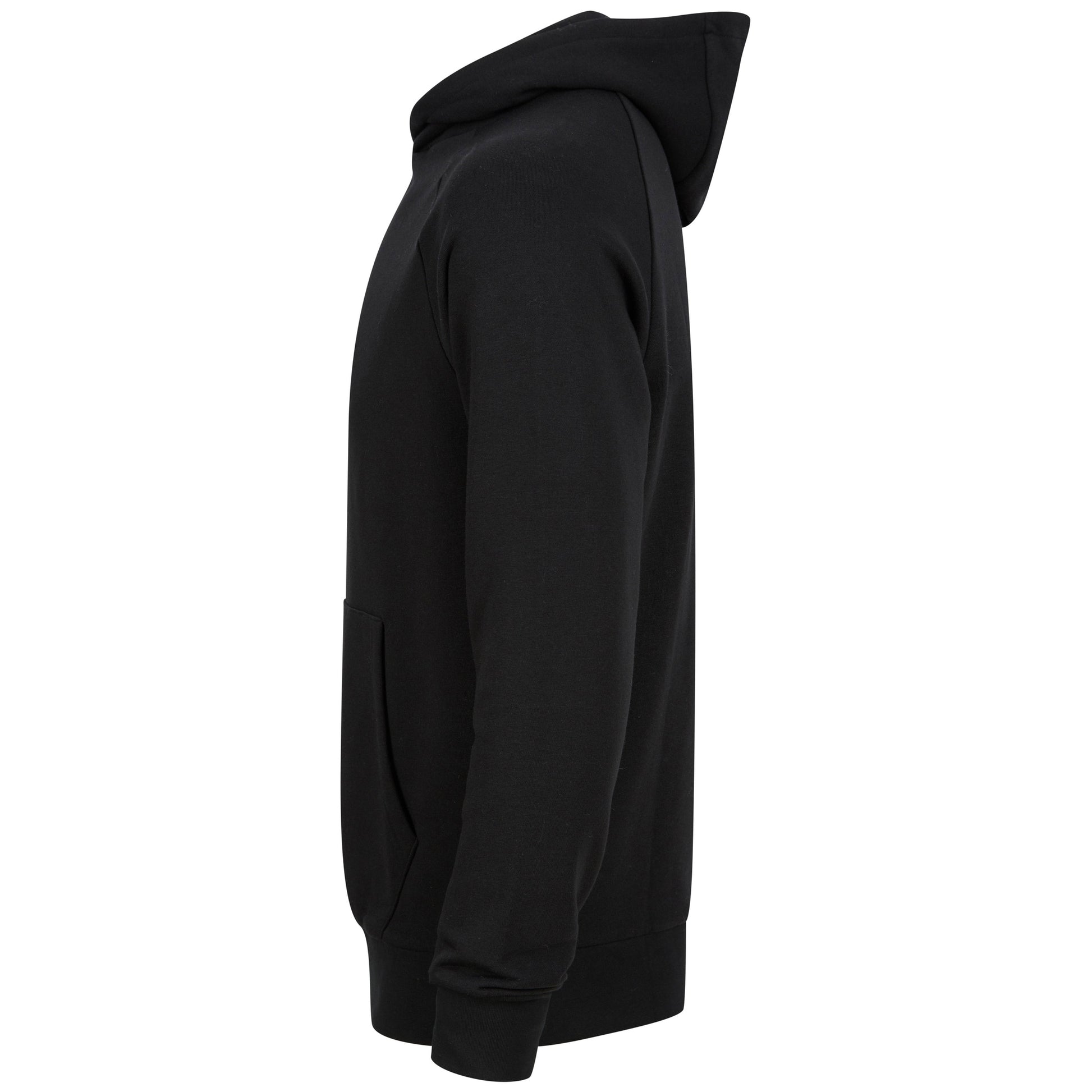 Keep it comfy in this on-trend unisex athleisure hoodie, featuring a longline slim-fit fora performance feel that also offers street style. Cut from an ultra-smooth brushed back fleece cotton-poly blend, this hoodie has an overhead hood, pouch pocket and ribbed trims for a custom fit. Finished with a tear-out label to make rebranding easy.