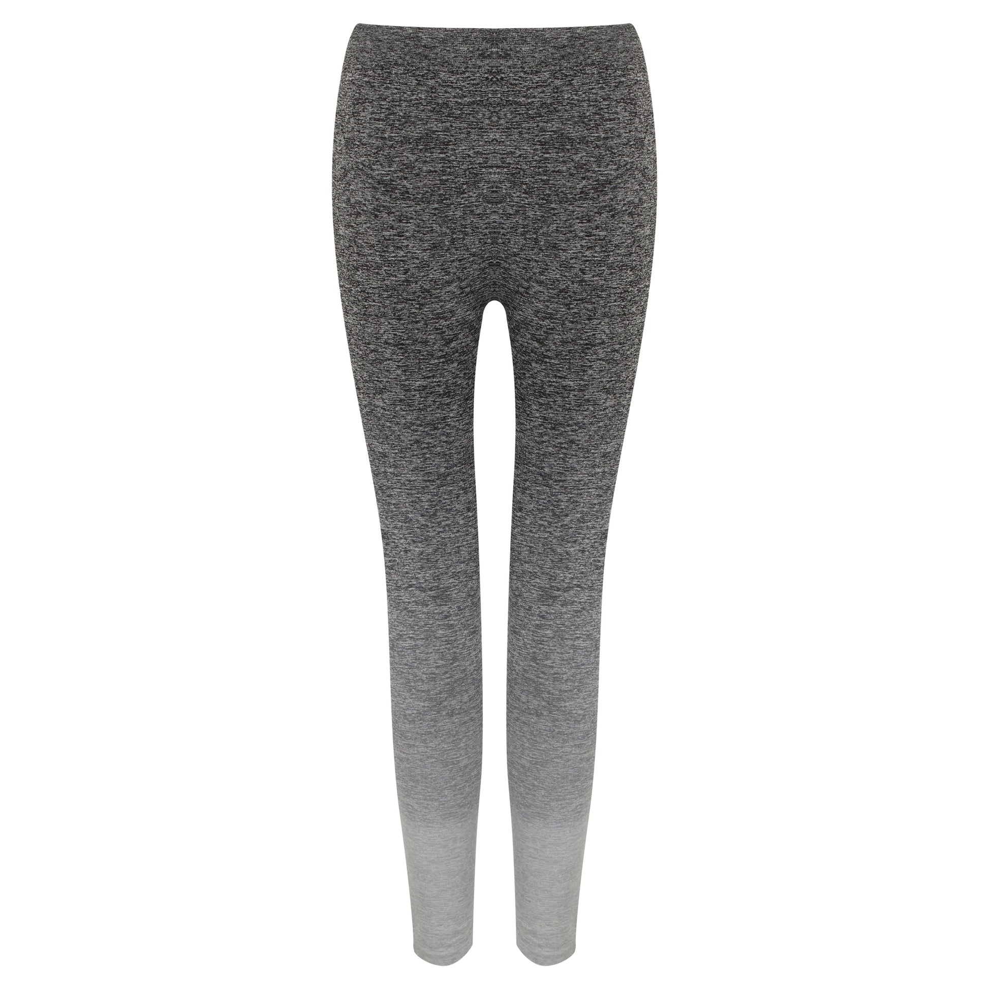 Fitted, high-stretch leggings with grown-on waistband. Seamless knit for comfort. Melange fabric with fade out/ombre colouring. Blind stitch at hems. Tombo tear-out label. WRAP certified. BSCI certified.