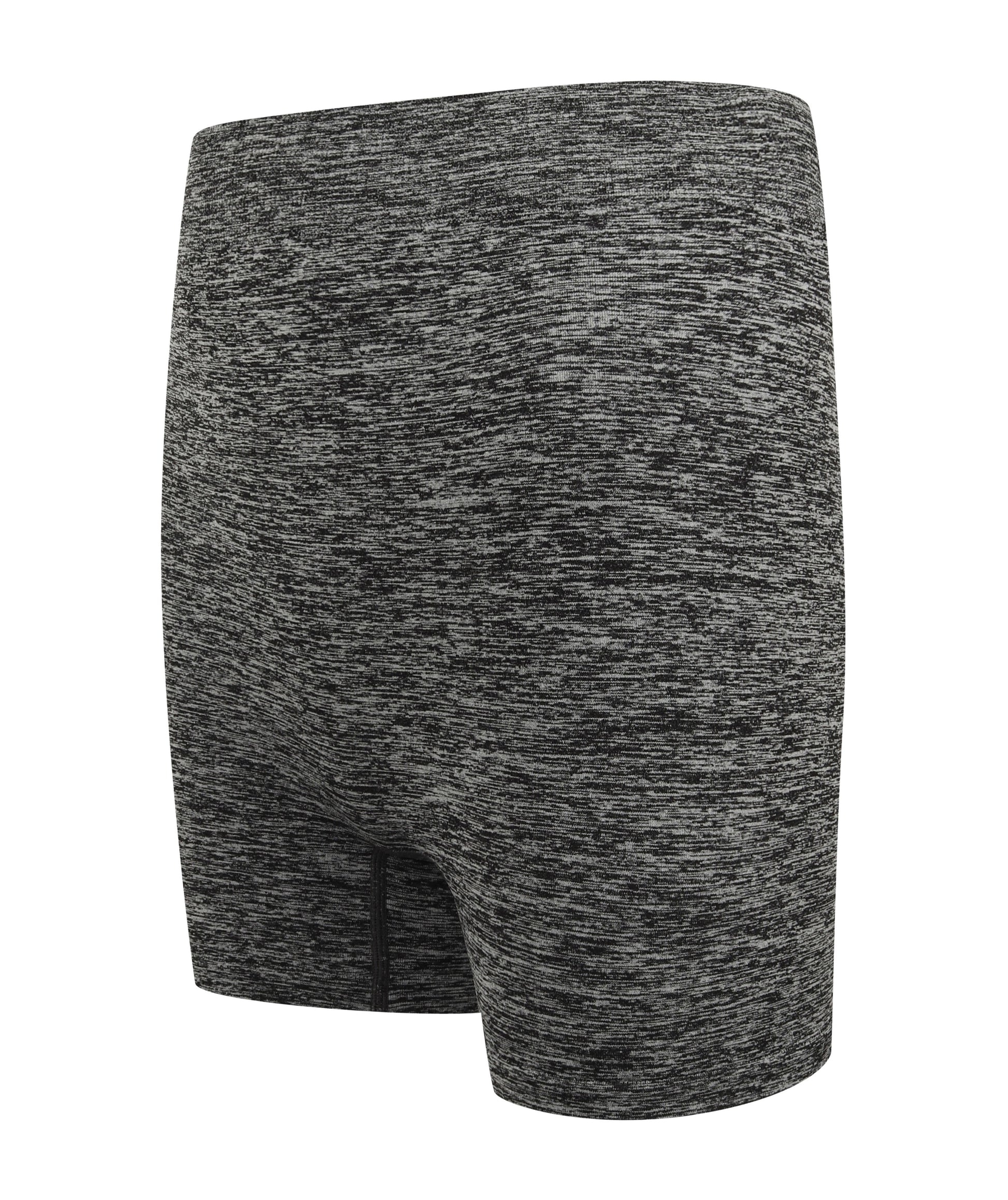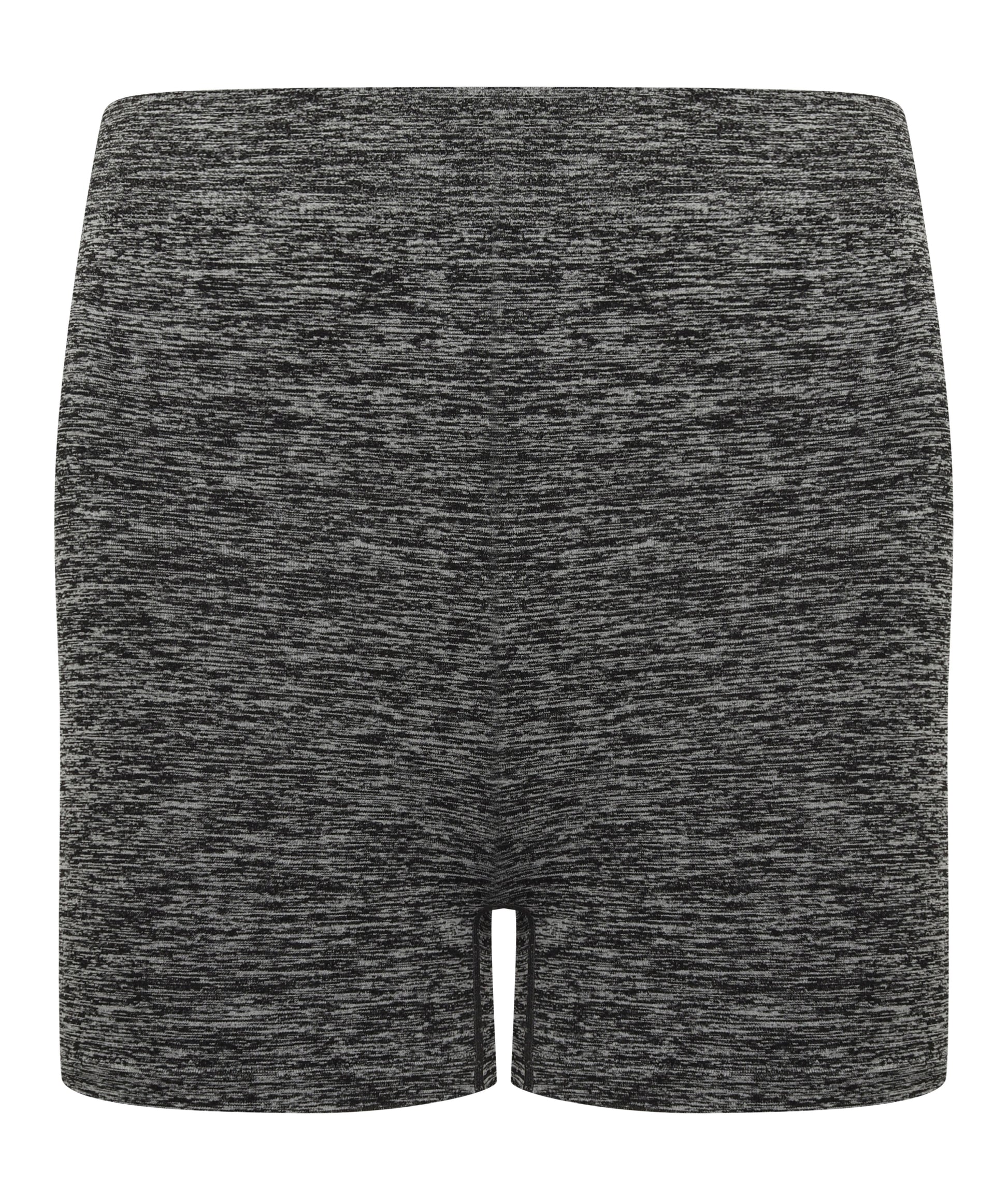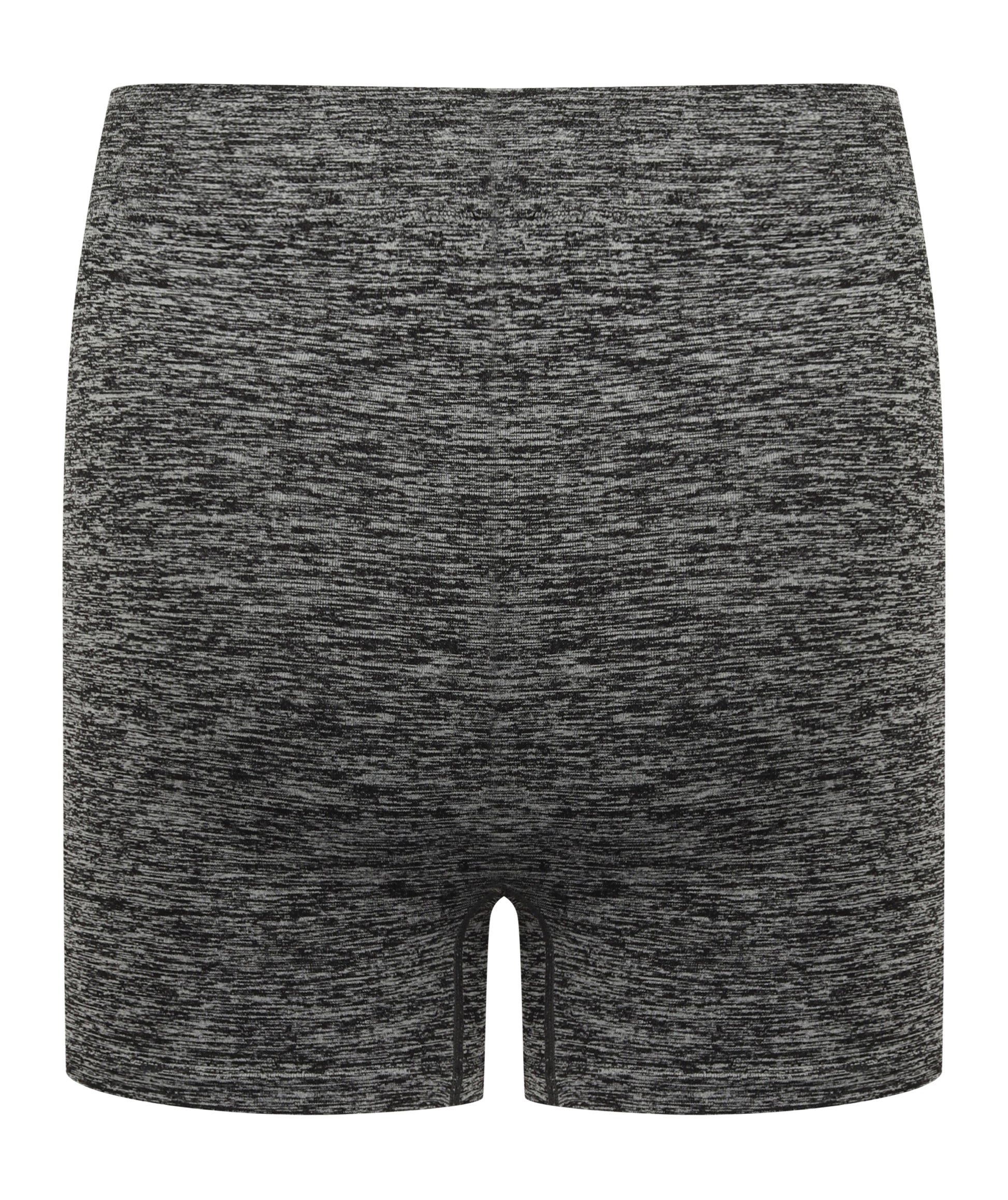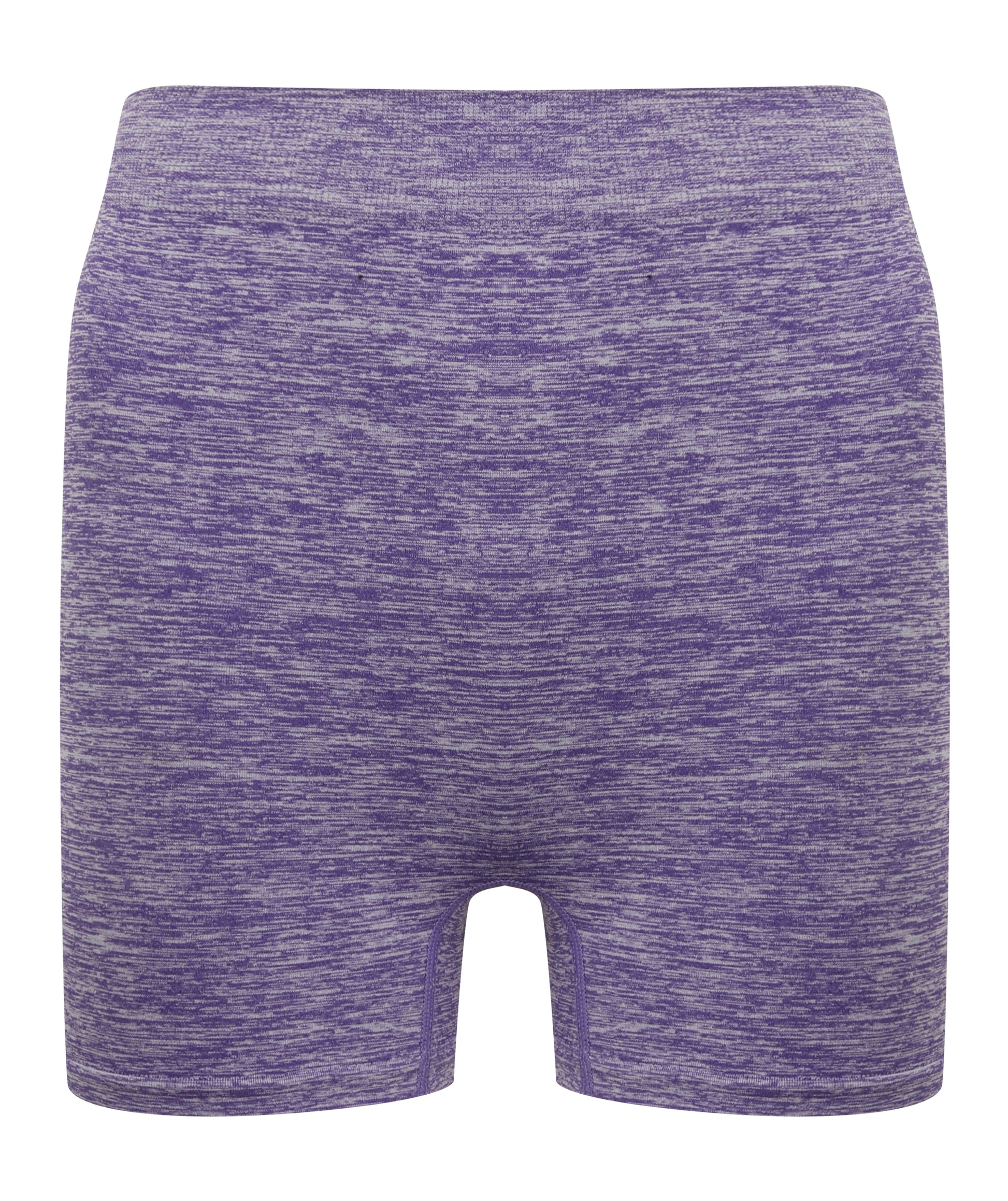 Fitted, high-waisted stretch shorts in melange fabric. Seamless knit for comfort. Blind stitching at hems and grown-on waistband. Tombo tear-out label. BSCI certified. WRAP certified.