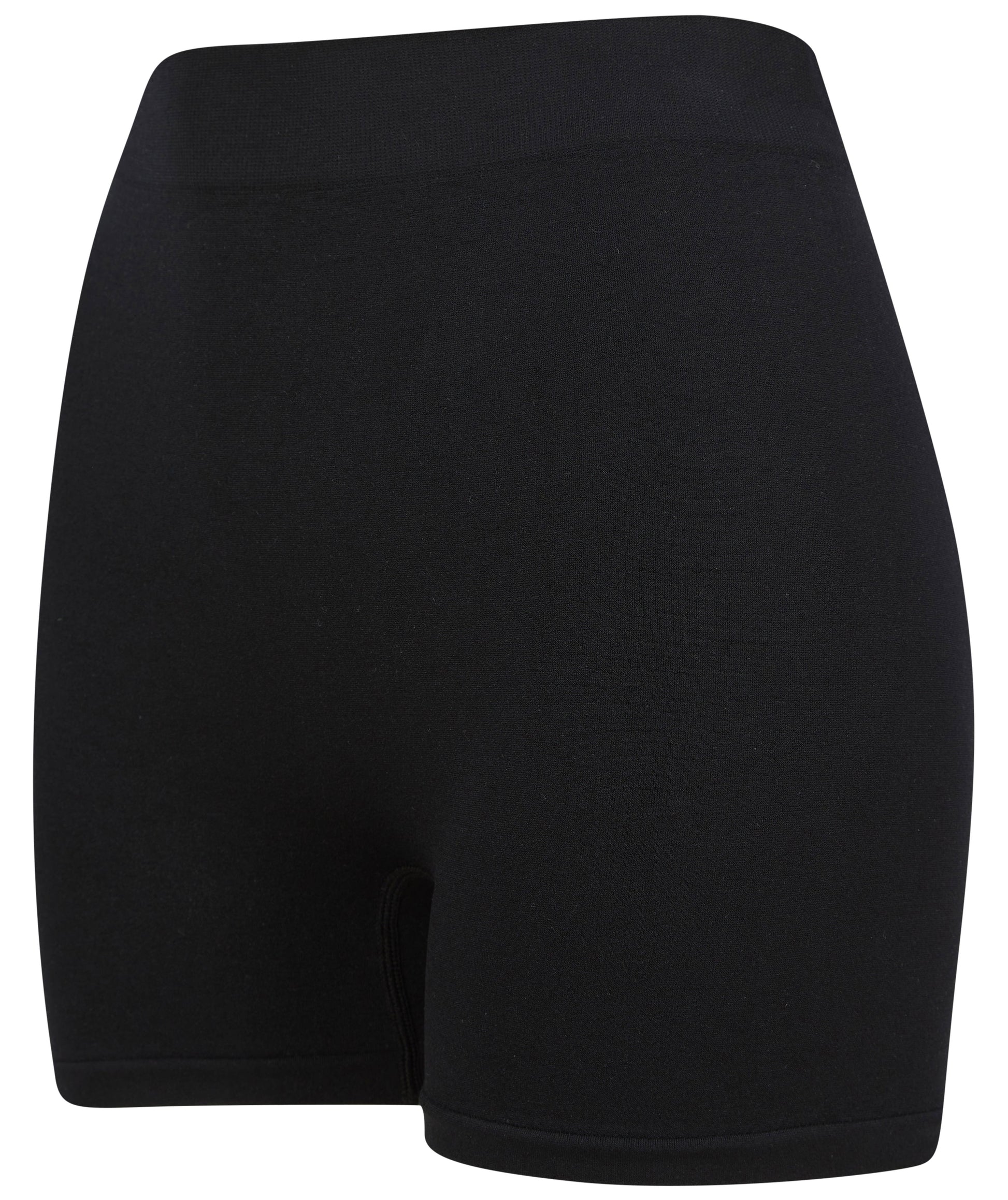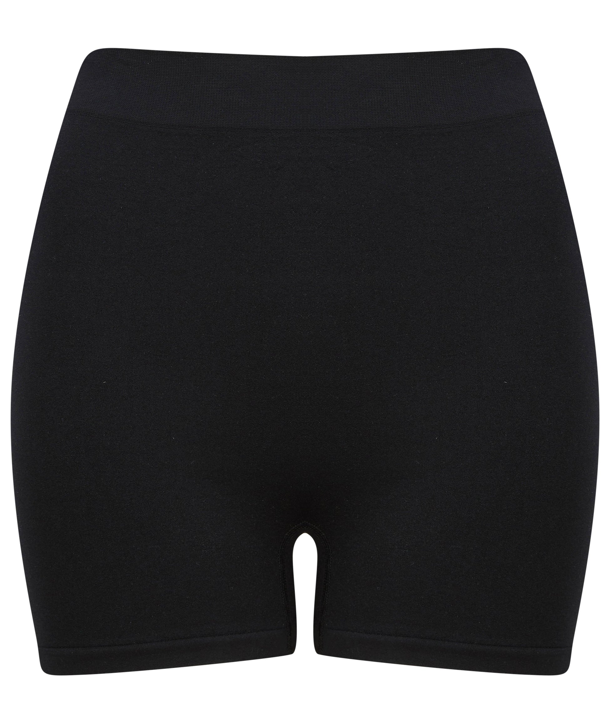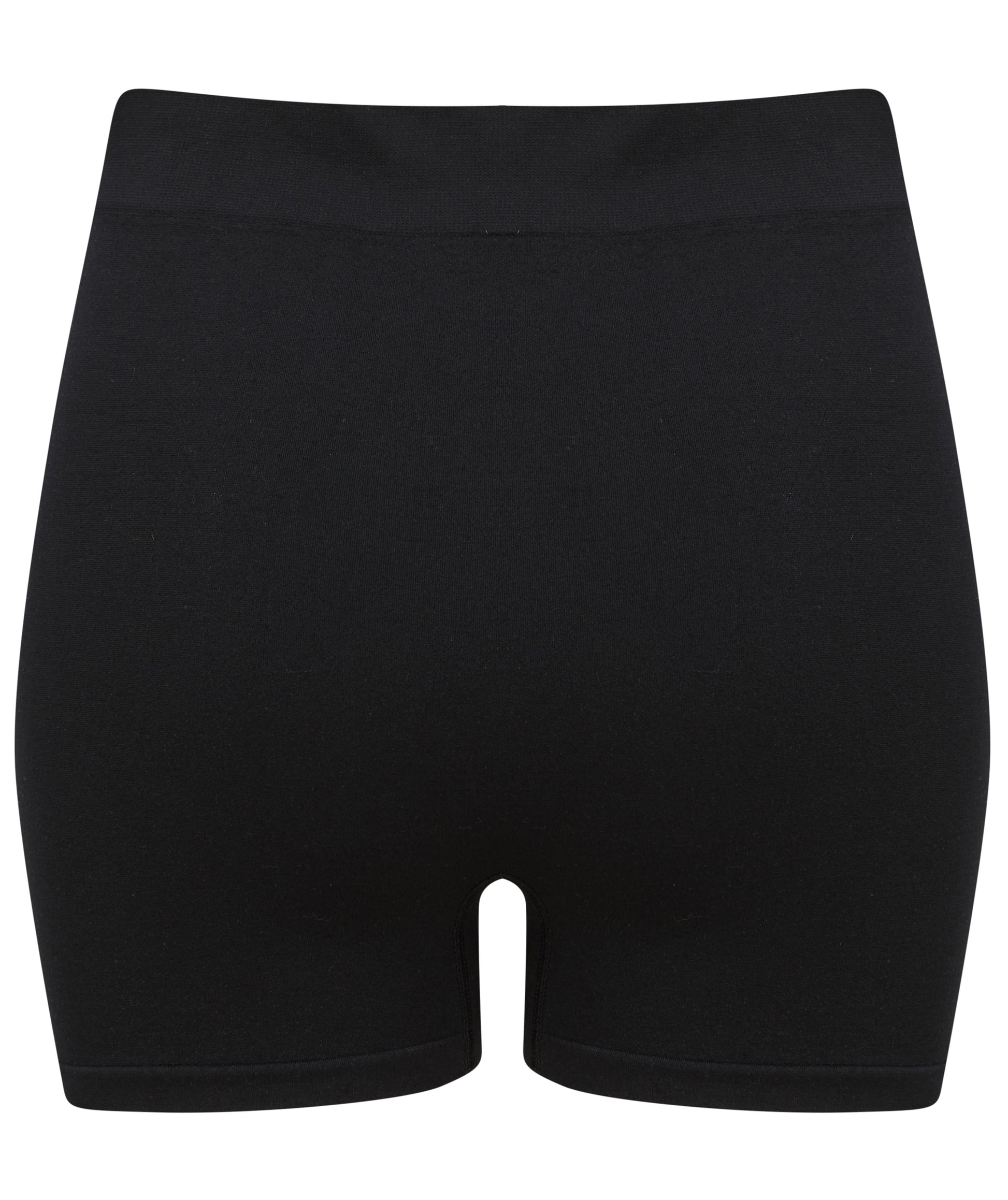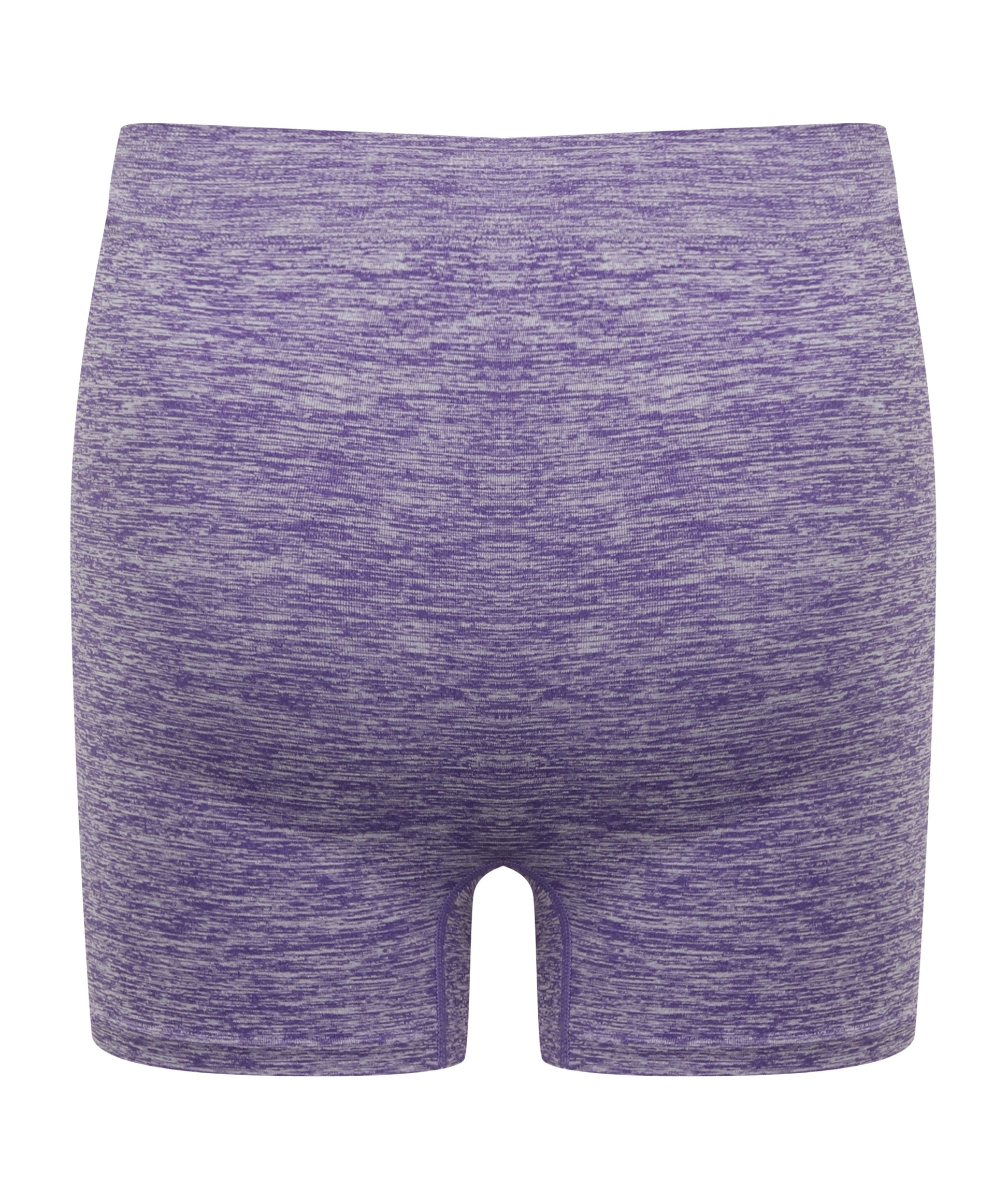 Fitted, high-waisted stretch shorts in melange fabric. Seamless knit for comfort. Blind stitching at hems and grown-on waistband. Tombo tear-out label. BSCI certified. WRAP certified.