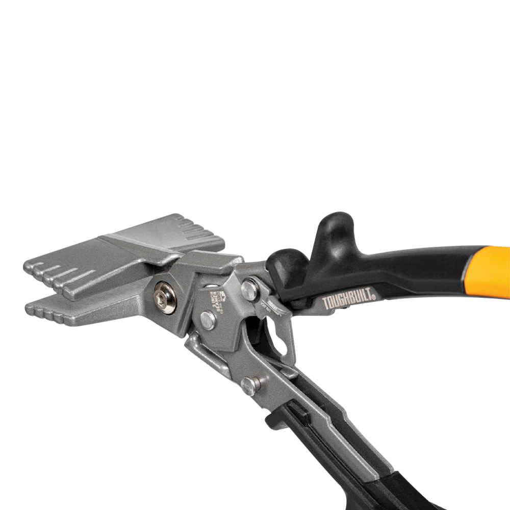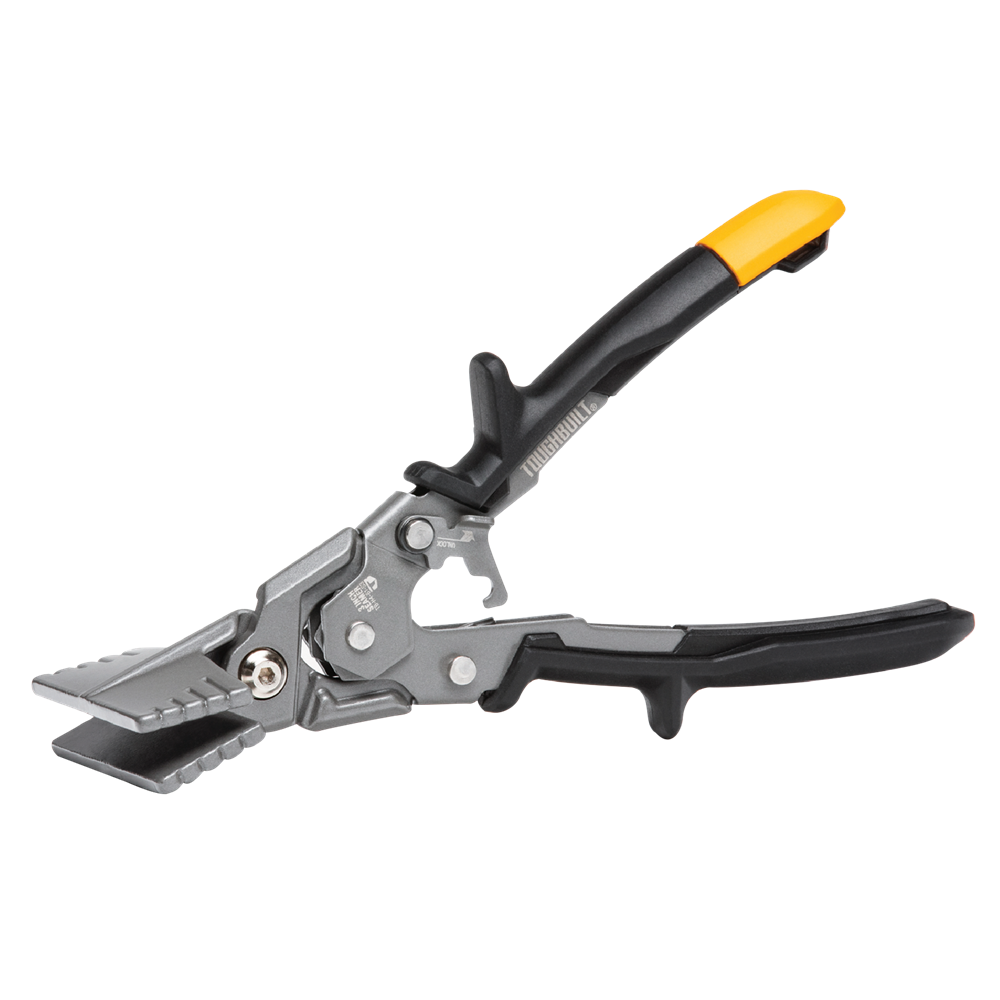 Jaw folds 22-gauge steel and 24-gauge stainless steel. The patent pending ergonomic grip design allows 2 positions: rearward grip for maximum leverage, and forward grip for maximum control - 7.6cm / 3" forged head design with ¼ 1¼ jaw capacity, and ¼" depth markings - Flush mount hardware - One handed lock operation - Lanyard hole - Spring action for fast, effortless bending |