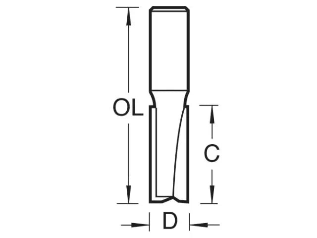 Trend Two Flute Straight Cutters produce a cleaner finish than single flute cutters. Suitable for grooving, rebating, morticing, drilling and shallow lateral routing cuts such as recessing hinges.