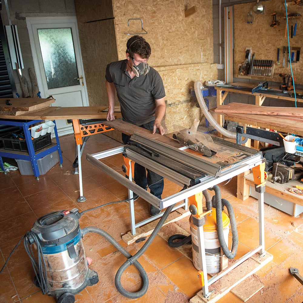 Precision contractor saw module designed for use with the Workcentre TWX7, resulting in a full-featured saw table capable of professional results. Powerful 1800W motor and precision 254mm 60T TCT blade. Accurate 83mm blade height adjustment and 0-45° bevel angle adjustment for performing complex bevel cuts. Protractor gauge and rip fence for performing rip cuts, cross cuts and mitre cuts. Dust extraction port located below the table surface for efficient, unobtrusive dust removal. Easy to assemble and configure and fully supported by optional accessories for extending functionality. Includes push stick, spanners, rip fence, protractor gauge and dust port adaptor.