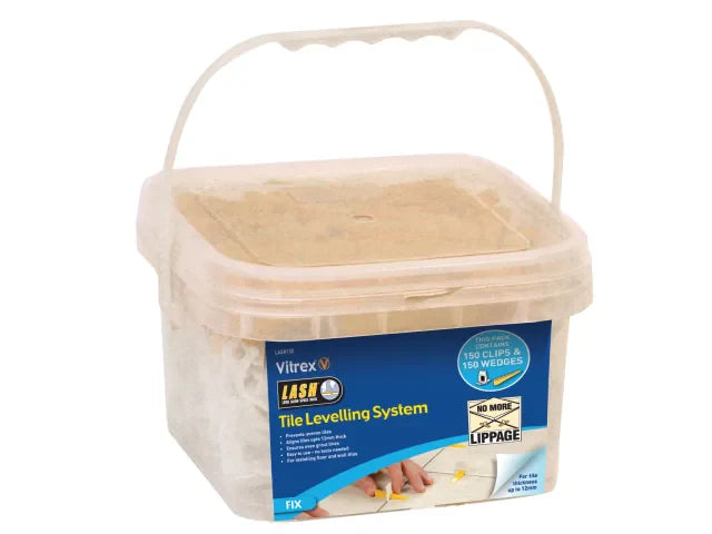 Vitrex Lash Clips & Wedges help prevent uneven tiles. Aligns tiles up to 12mm thick and ensures even grout lines. Easy-to-use, no tools needed.