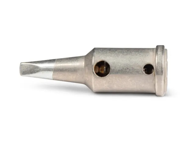 Replacement Double Flat Soldering Tip for the Weller WLBU75 Cordless Butane Soldering Iron. Helps deliver heat to solder joints greater than 2.4mm wide on PCBs and can also be used for general soldering tasks. Join wires (>8AWG), micro-electronics, drones, small appliances, model railroads, audio components, electronic repair, automotive, marine, hobby kits and crafts. The tip is easy to change by pulling the old tip off then pushing the new tip on (turn off soldering iron and allow the tip to cool before removal).