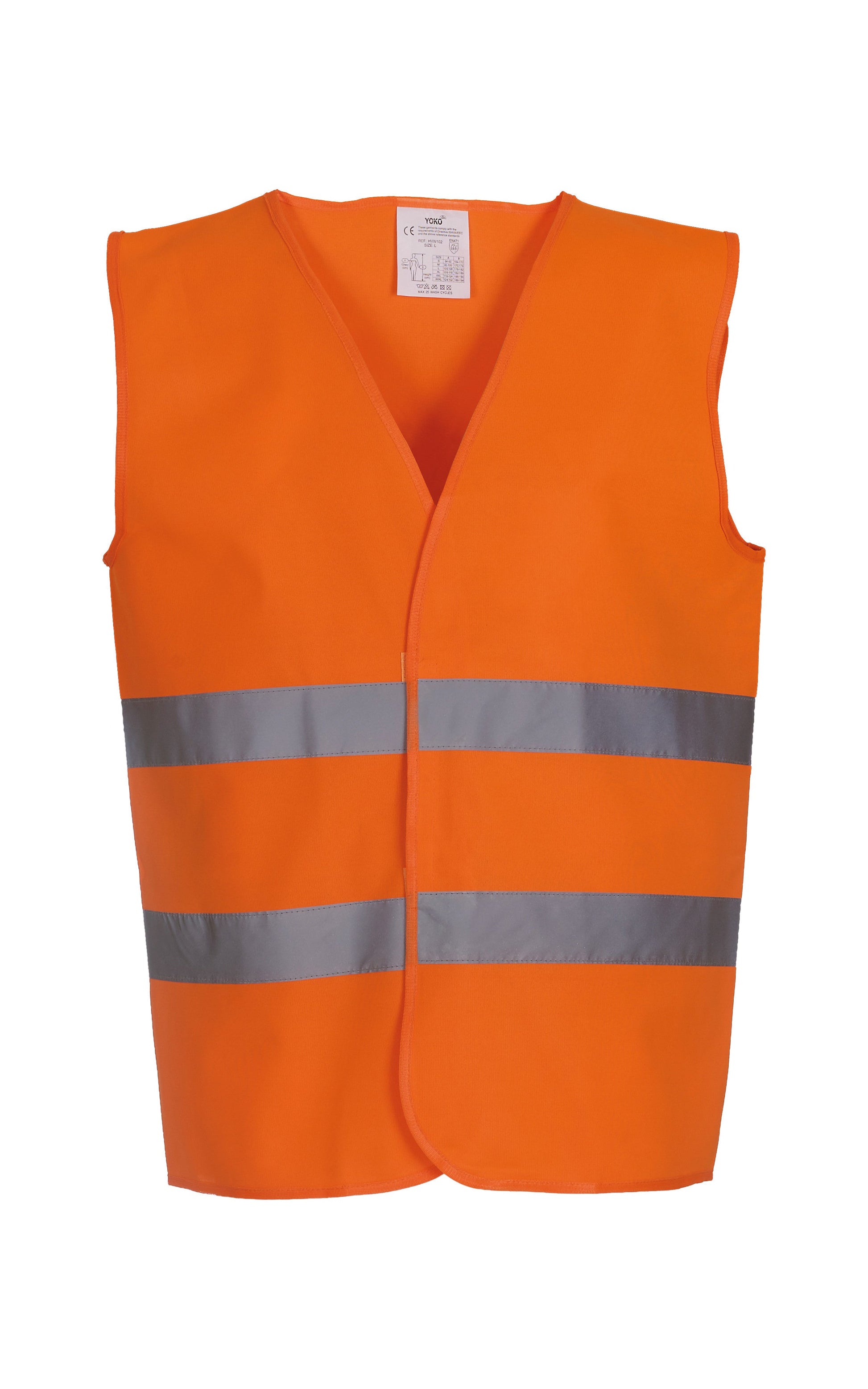 100% Polyester fabric with hook and loop fastening. Two 5cm width reflective tapes around the body. Hi-Vis Yellow & Orange conform to EN ISO20471:2013 Class 2.