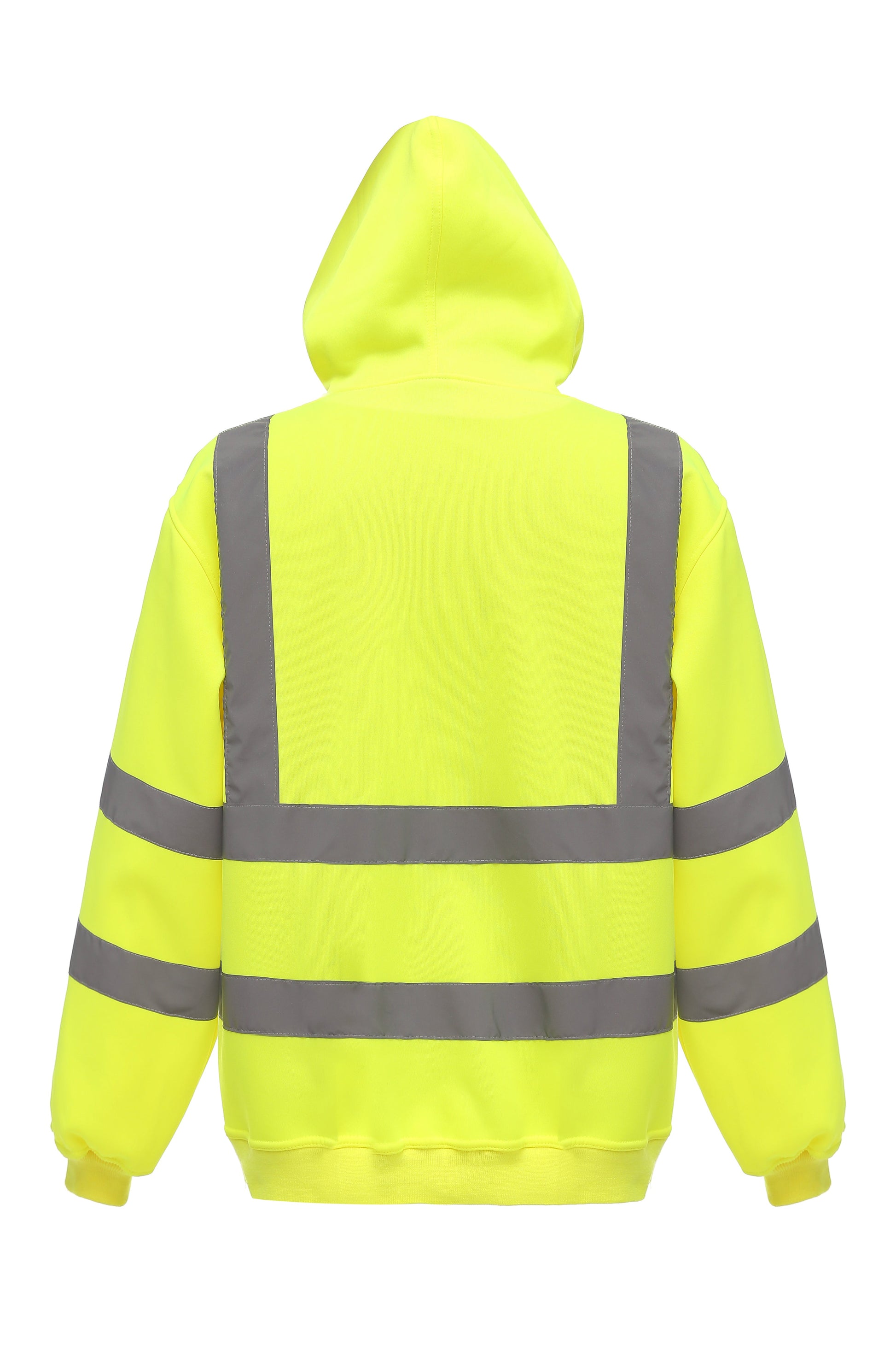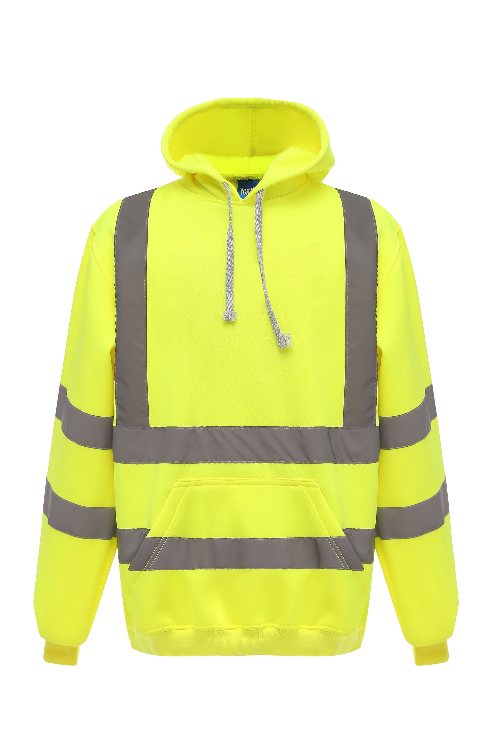 Hi-Vis conforms to EN ISO20471 Class 3; Made of water-repellent anti-pill single jersey knitted soft-feel polyester fabric; Two 5cm width reflective tapes around the body and arms, and one over each shoulder; Attached hood with draw cord adjustment; Taped back neck for extra comfort; Drop shoulder; Knitted ribbed cuffs and waistband; Front kangaroo pocket; Twin needle stitching throughout;.