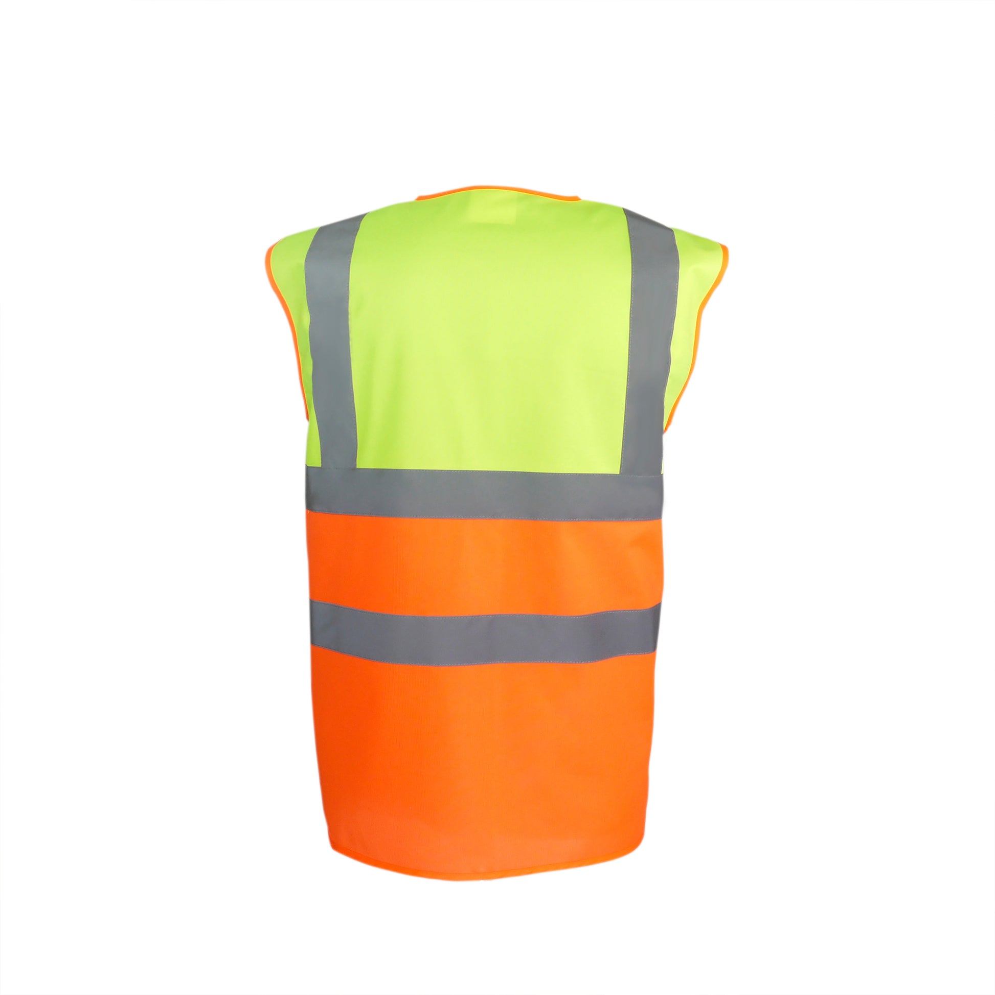 Nice and simple, two-tone contrast waistcoat made from recycled 100% polyester fabric with hook and loop fastening. Two 5cm-width reflective tapes around the body and one over each shoulder. Hi-vis Yellow/Orange conform to EN ISO20471:2013 Class 2. All other colours conform to EN ISO20471:2013 Class 1. Certified Sedex and OEKO-TEX®.